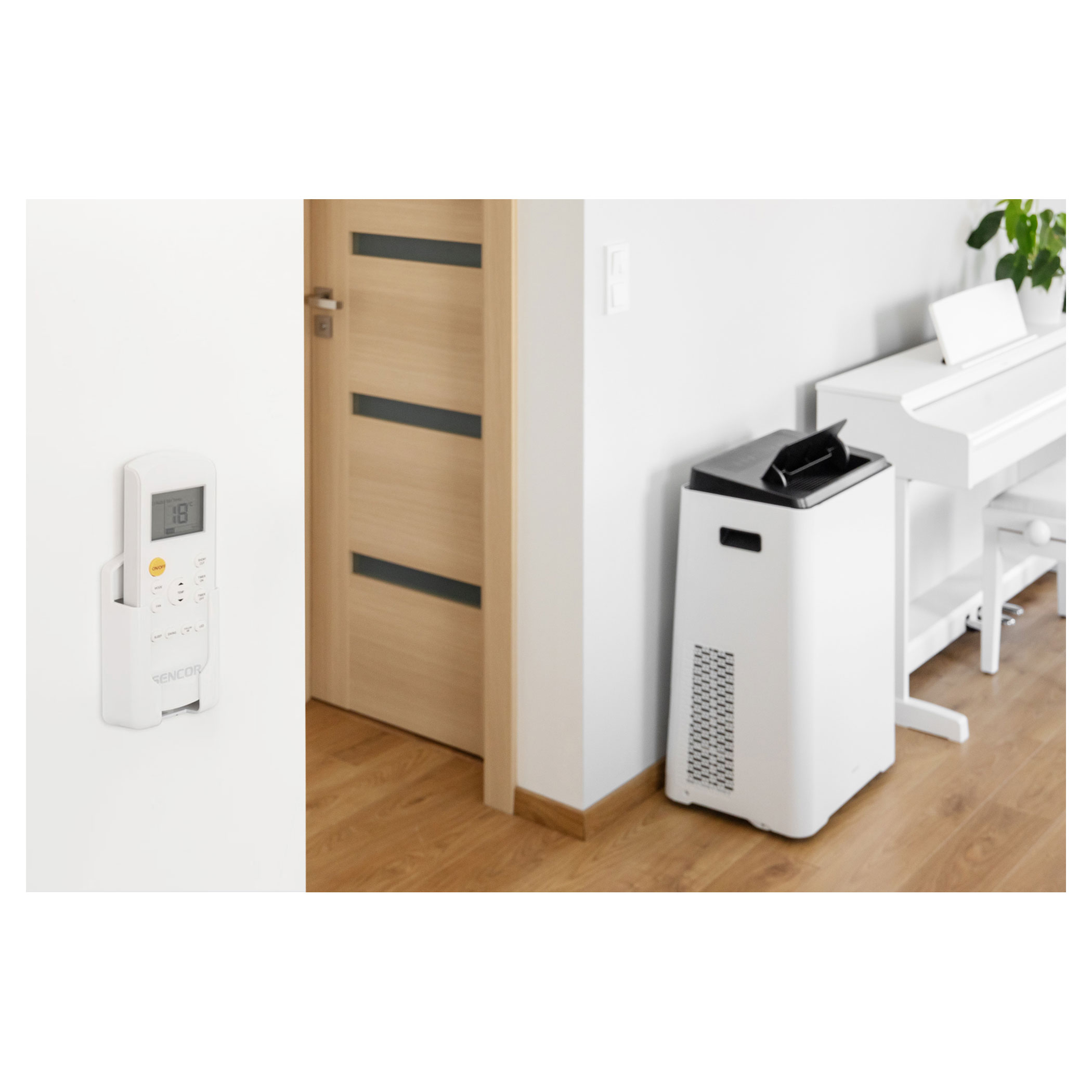 خزان مدمج للمياه المتكثفة (حجم 1 لتر) به منفذ للصرف ومؤشر ضوئي للامتلاء (في حالة وجود رطوبة عالية للغاية في الغرفة فوق الحد الأقصى لقدرة نظام التبخير الذاتي)