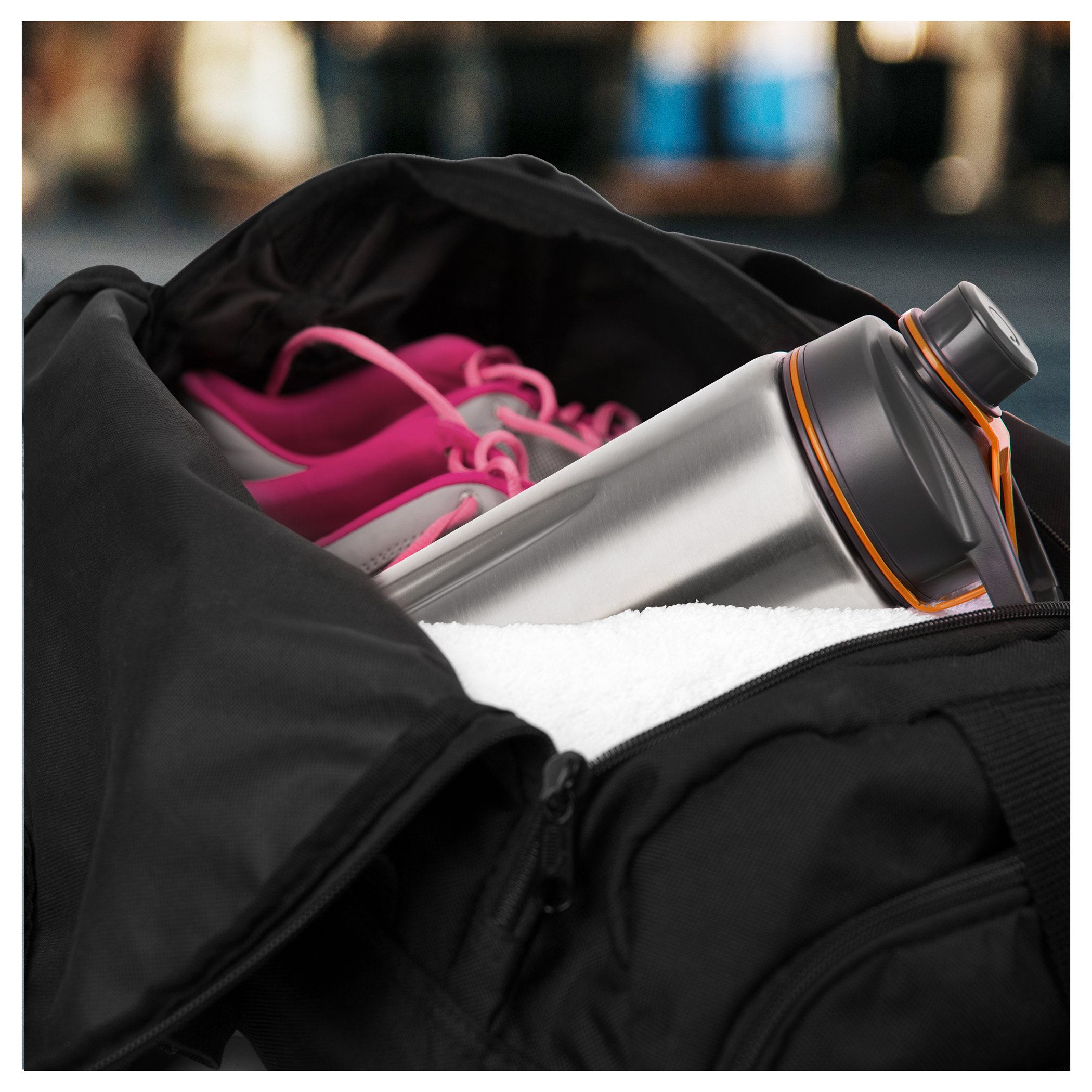 • غطاء رياضي فريد ذو آلية قفل أمان لمنع التسرب.