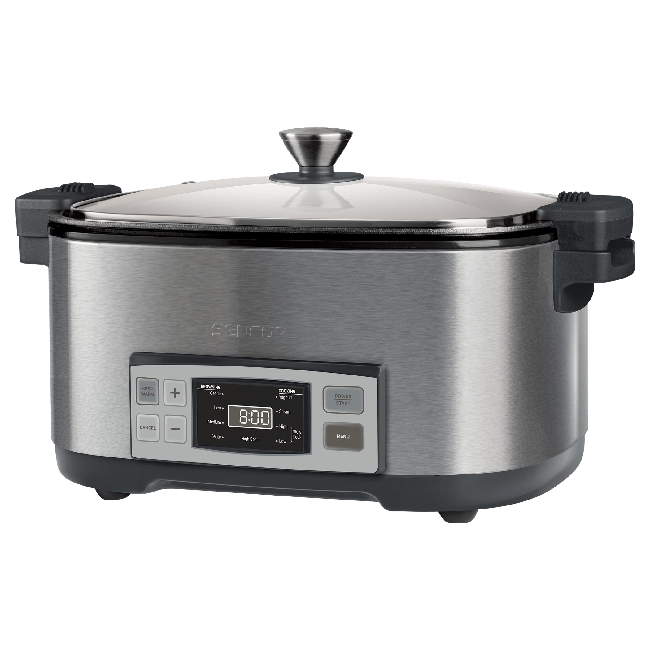 محتوى الصندوق: طاهي بطيء مع وعاء ألومنيوم 3 مم، وباخرة من الفولاذ المقاوم للصدأ